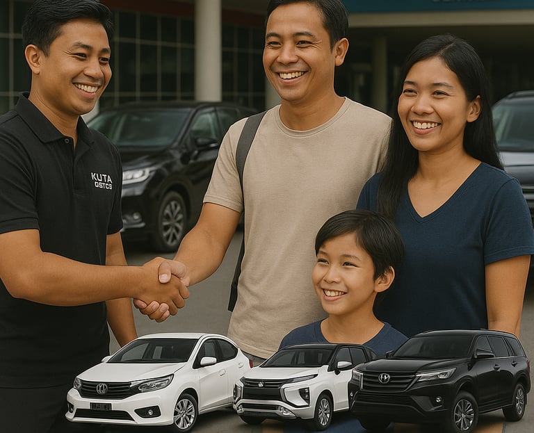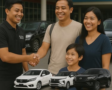 Kami menyewa mobil di Bali sejak tahun 2010, khususnya di Kuta Bali Indonesia. Kami memiliki lebih dari 250 mobil untuk disewa setiap hari. Tidak hanya itu, kami bergabung dengan 12 perusahaan rental mobil di Bali. Kami mencoba membantu anda untuk mendapatkan mobil di Bali. Dan jadikan liburan anda di Bali menyenangkan. Kami menyewakan mobil kami dengan sopir atau mengemudi sendiri. Banyak mobil tersedia untuk disewa setiap hari. Mobil-mobil tersebut adalah mobil manual atau mobil matic. Mobil tersebut adalah Jimny, Agya, Ayla, Rocky, Raize turbo Avanza, Calya, Xenia, Innova, Terios, Fortuner dan masih banyak lagi. Harga mobil tergantung pada lama dan jenis mobil. Hubungi kami untuk ketersediaan dan harga.
